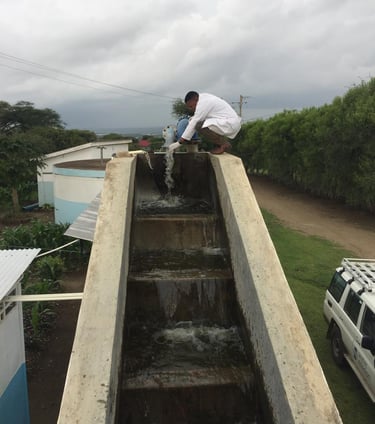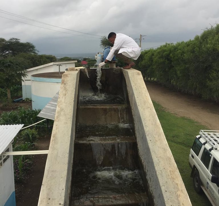 Monitoring of water quality in areas affected by water falls, mud, stones and soil from Hanang mountain.